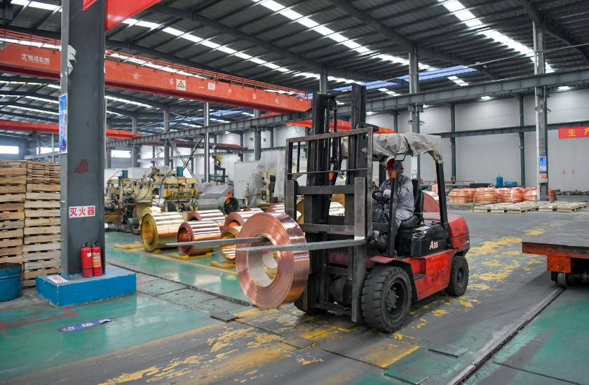 工人在EVO视讯官网铜科生产车间内忙碌。